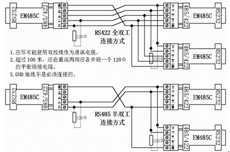 1.半雙工全雙工通用,可選擇RS485半雙工或RS422全雙工的工作方式。