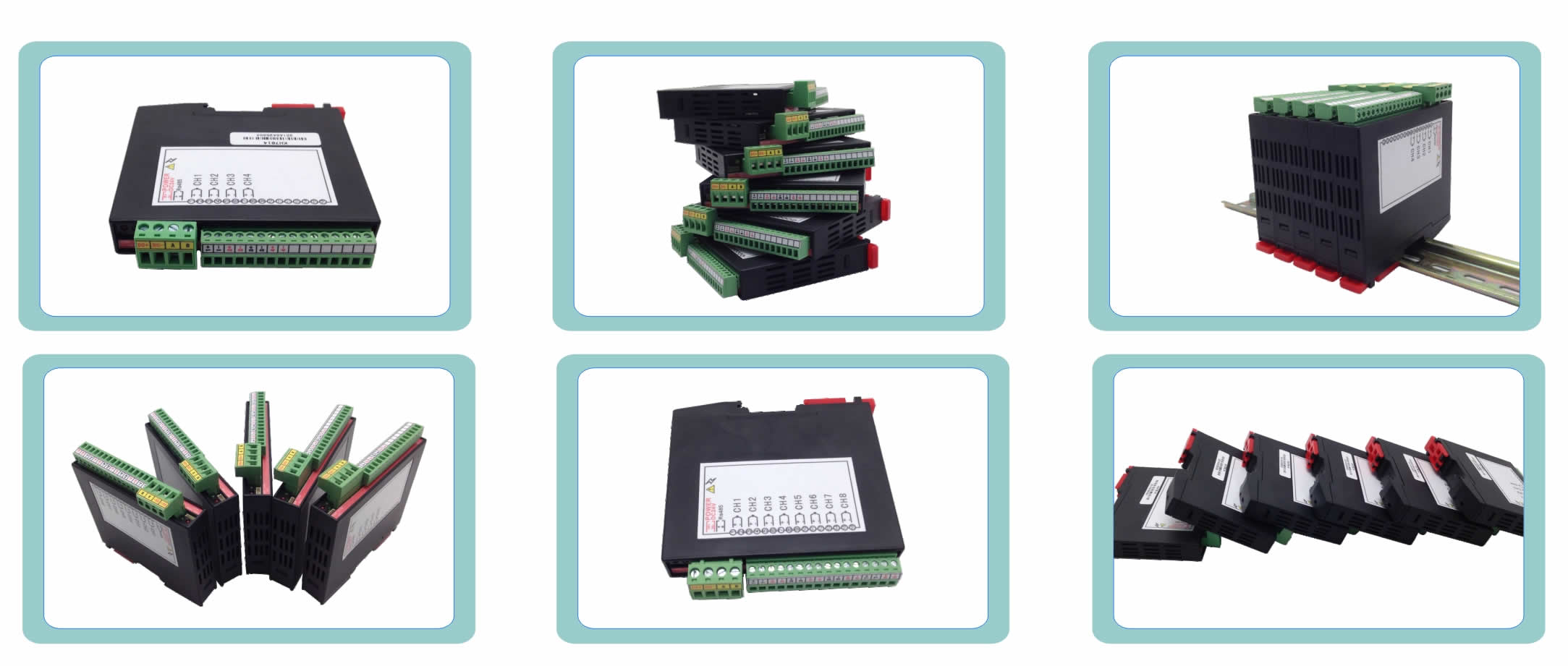 超薄型KH7014多通道模擬量輸入采集模塊,可實現對工業控制等現場的多路模擬信號的數據采集(如:溫度、濕度、壓力、流量、線性電壓、線性電流、電池組參數等參數檢測);廣泛應用于石油、冶金、制藥、食品、工業自動化、倉庫、圖書館等領域,相對于市面同類產品具有體積小巧、超薄模塊機身、高精度、高隔離,支持多通道輸入,采用標準MODBUS-RTU協議實現RS485總線傳輸。