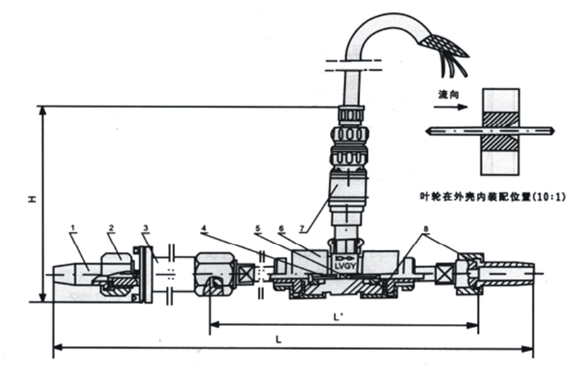 1管接頭2接線螺母3過濾器4前導向器5葉輪6外殼7前置放大器8密封墊圈